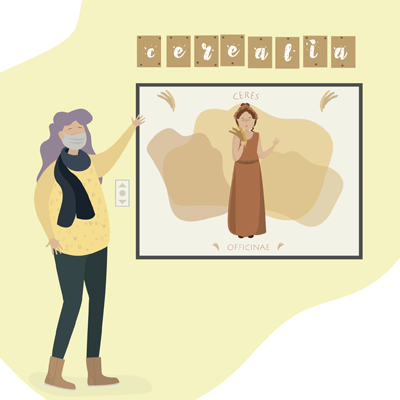 Ilustración de personajes para los talleres didácticos del Aula Clásica de la Saguntina Domus Baebia.
