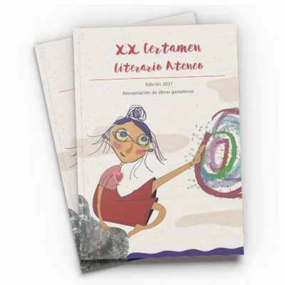 Ilustración y maquetación del libro recopilatorio de los trabajos presentados al Certamen Literario Ateneo 2020. Formato 17 x 23 cm.