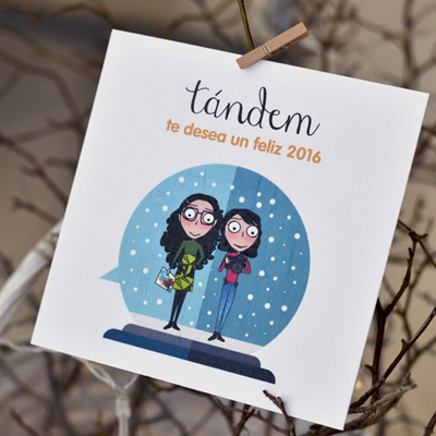 Este año nuestros clientes han recibido una felicitación en la que hemos trabajado con mucho cariño. Hemos enviado un mensaje de optimismo a través de la ilustración de un paisaje imaginario lleno de color. Formato de postal de 175 x 125 mm.