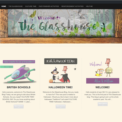 Diseño y publicación del blog The Glasshouse dirigido a alumnos de primaria con contenidos destinados al aprendizaje de inglés.