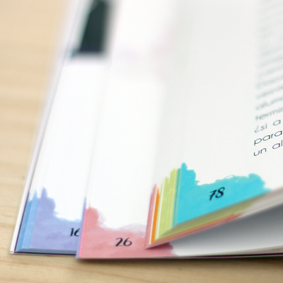 Tamaño A5 cerrado · 148 x 210 mm. Portadas en papel couché de 300 g. Interior en papel couché 135 gr. 50 páginas.