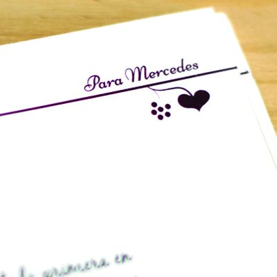 Tamaño 176 x 126 mm. Papel verjurado de 350 g. Sobre Kraft de 13 x 18 cm. Empaquetado: atado con flor preservada roja.