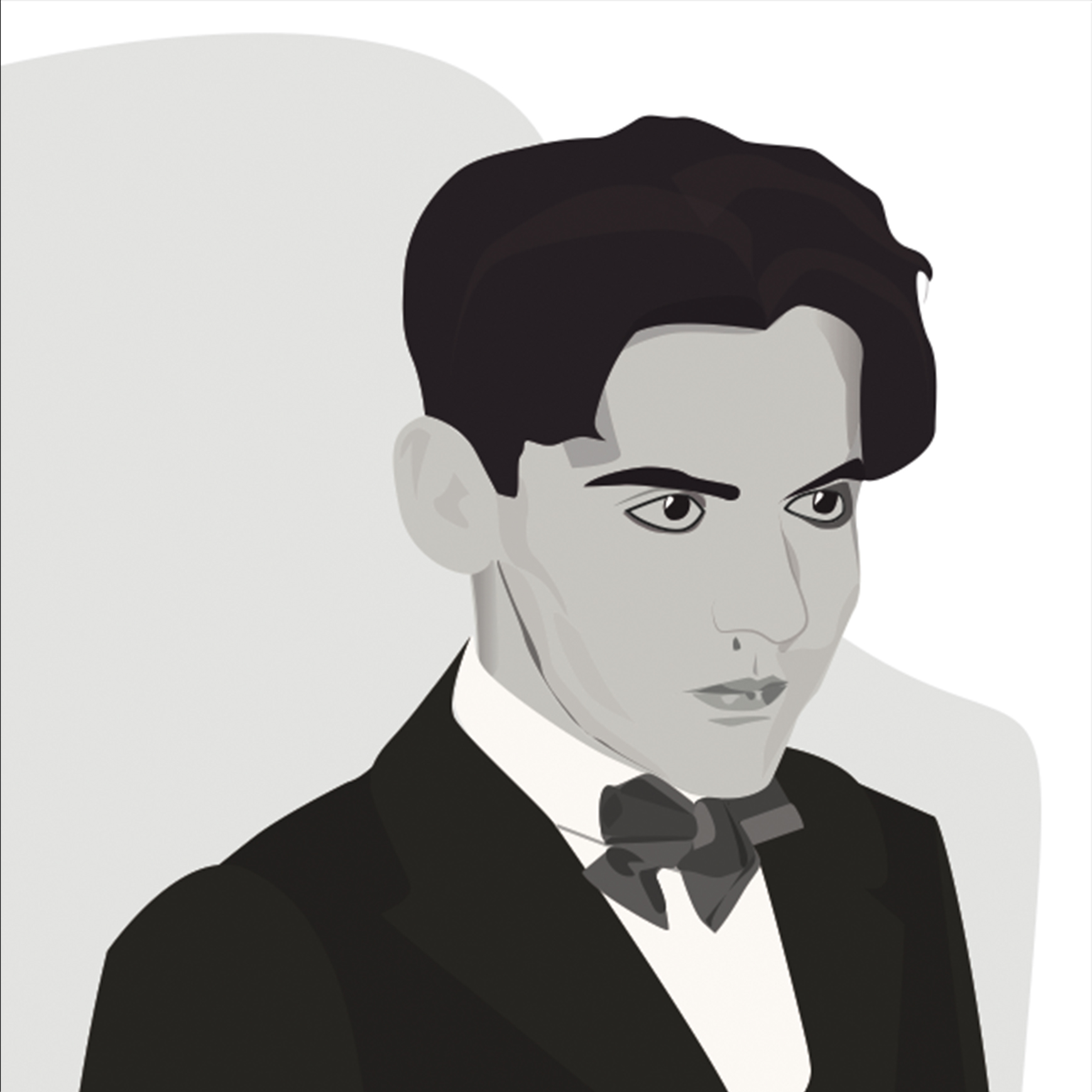 Ilustración original de Federico García Lorca y diseño de postal para el proyecto Poesía en la Calle, de la concejalía de Cultura del Ayuntamiento de Cheste. Formato A5.